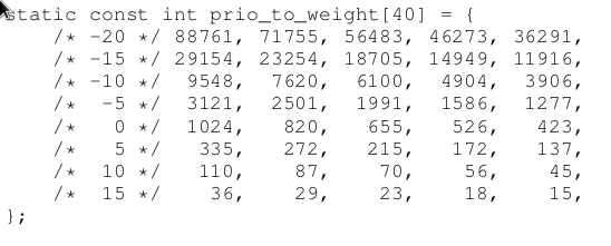 Một điểm thông minh trong việc xây dựng bảng trọng số là: bảng này giữ nguyên tỷ lệ chia sẻ CPU khi chênh lệch giá trị nice