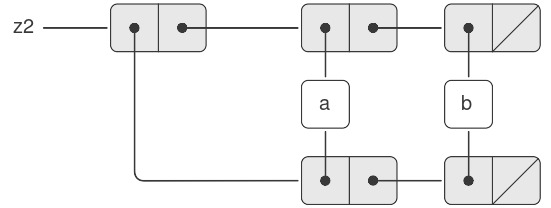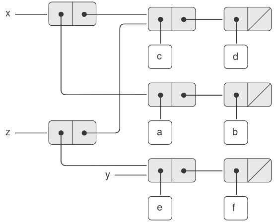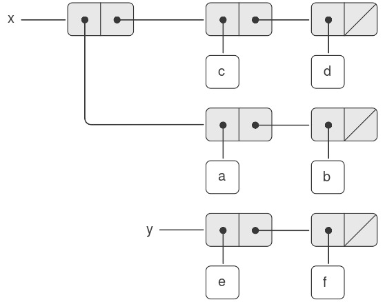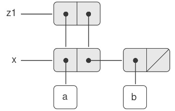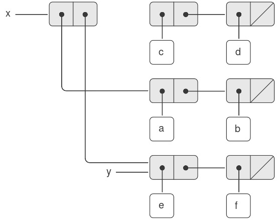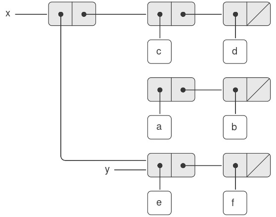 Chúng ta đã đề cập trong 3.1.3 về các vấn đề lý thuyết của “sự đồng nhất” và “sự thay đổi” được đặt ra bởi việc giới thiệu assignment (gán). Những vấn đề này xuất hiện trong thực tế khi các pairs riêng lẻ được shared (chia sẻ) giữa các data objects khác nhau. Ví dụ, xét cấu trúc được tạo bởi: