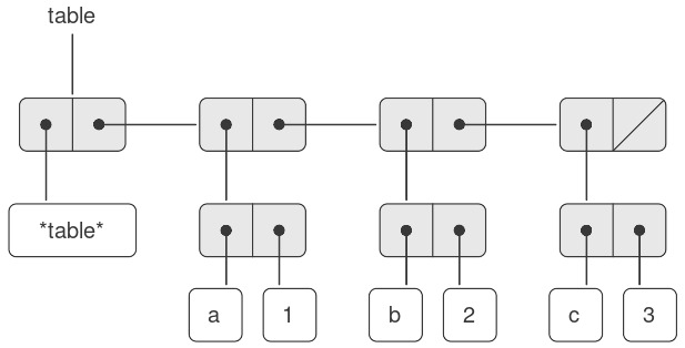 để xây dựng danh sách sẽ tạo ra một cấu trúc liên kết của các pairs, trong đó nhiều pairs riêng lẻ được chia sẻ bởi nhiều cấu trúc khác nhau.