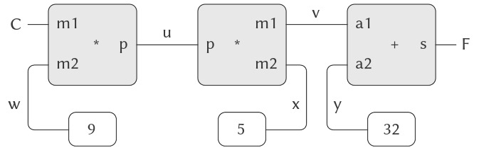 là constraint đã yêu cầu đặt giá trị đó 16. Sau đó, connector sẽ thông báo cho tất cả các constraints mà nó tham gia, ngoại trừ constraint đã yêu cầu đặt giá trị. Điều này được thực hiện bằng iterator (bộ lặp) sau, áp dụng một procedure được chỉ định cho tất cả các phần tử trong danh sách ngoại trừ một phần tử cho trước: