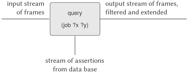 Trước đó trong chương này, chúng ta đã khám phá công nghệ triển khai interpreters (bộ thông dịch) và mô tả các thành phần thiết yếu đối với một interpreter cho một Lisp-like language (ngôn ngữ giống Lisp) (thực tế là cho bất kỳ ngôn ngữ thông thường nào). Giờ đây, chúng ta sẽ áp dụng những ý tưởng này để thảo luận về một interpreter cho một logic programming language. Chúng ta gọi ngôn ngữ này là query language (ngôn ngữ truy vấn), bởi vì nó rất hữu ích để truy xuất thông tin từ data bases (cơ sở dữ liệu) bằng cách xây dựng queries (truy vấn), hay các câu hỏi, được diễn đạt trong ngôn ngữ này.