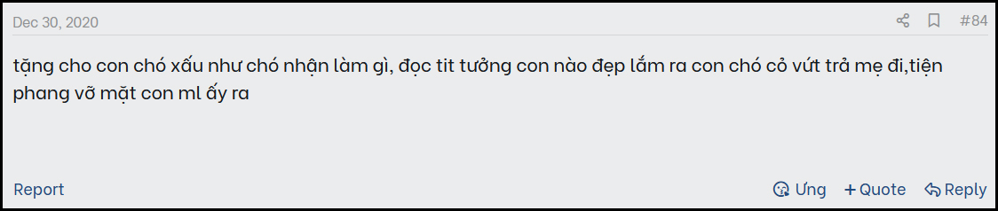 Còm khẳng định là chó cỏ và chê xấu, rất hợp với bối cảnh chó quê trong phim. Nếu ai thắc mắc vì sao người trong ảnh tự nhiên chửi càn thì đừng lấy làm lạ, tôi đã bảo điên loạn là đặc trưng của vozer rồi