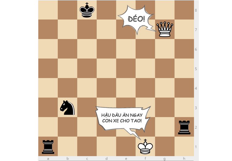 Bài này sẽ có vài thuật ngữ cờ vua, đều cơ bản thôi nên tôi không giải thích, hi vọng mọi người vẫn hiểu.