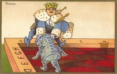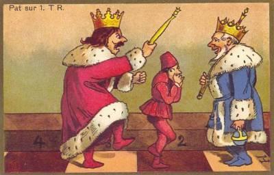 Biếm hoạ về cờ hoà vì hết nước đi (stalemate), một đặc trưng thú vị của cờ vua. Tranh của Pháp những năm 1990, không rõ tác giả.
