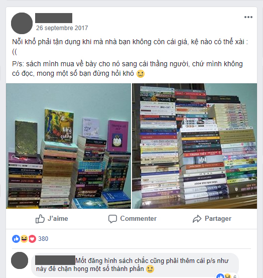 (Các bạn khoe sách có biểu hiện này hay không, chỉ các bạn biết rõ, hãy trung thực với lòng mình.)