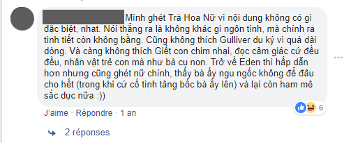 Tôi cũng được biết rằng có rất nhiều tiếng gáy chê bản dịch Diệp Minh Tâm, nhưng đều là từ các thành phần lởm khởm cả. Nghe gáy nhiều, tôi lại ưng.