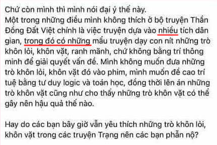 Đến giai đoạn này của truyện, chúng ta mới thấy rõ cái khập khiễng khi tác giả cứ mãi sao chép giai thoại. Bởi vì sao? Những giai thoại khôn lỏi luôn lấy trung tâm là những người dân thấp cổ bé họng. Họ thấp bé nên không thể thay đổi vấn đề từ thượng tầng, nên chỉ có thể trả đũa trong thoáng chốc mà thôi. Họ cũng yếu đuối nữa, nên họ mới cần dùng trò lươn lẹo để vừa có thể trả đũa, vừa không sợ bị phạt tội.